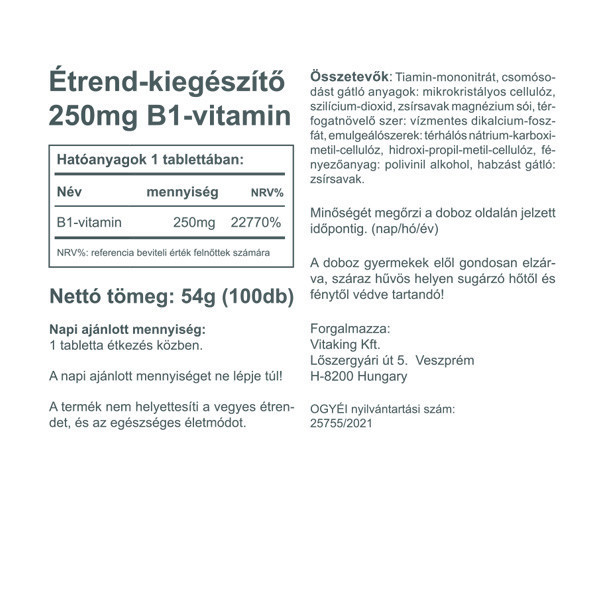 A B1-vitamin, másnéven tiamin, vízben oldódik, naponta pótolni kell, akárcsak a többi B-vitamin komplexhez tartozó vitaminokat. A B-1 vitamint erkölcsi (morális) vitaminnak is nevezik, az idegrendszerre és a szellemi viselkedésmódra gyakorolt hatása miatt.