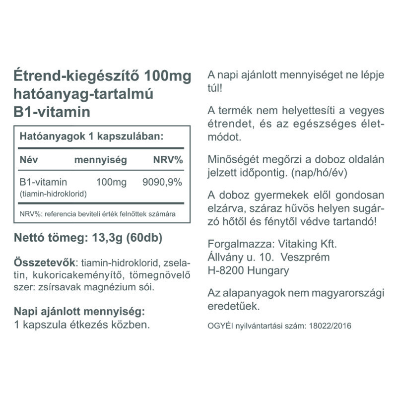 A B-1 vitamin, más néven tiamin, vízben oldódik, naponta pótolni kell, akárcsak a többi B-vitamin komplexhez tartozó vitaminokat. A B1 vitamint erkölcsi (morális) vitaminnak is nevezik, az idegrendszerre és a szellemi viselkedésmódra gyakorolt hatása miatt.