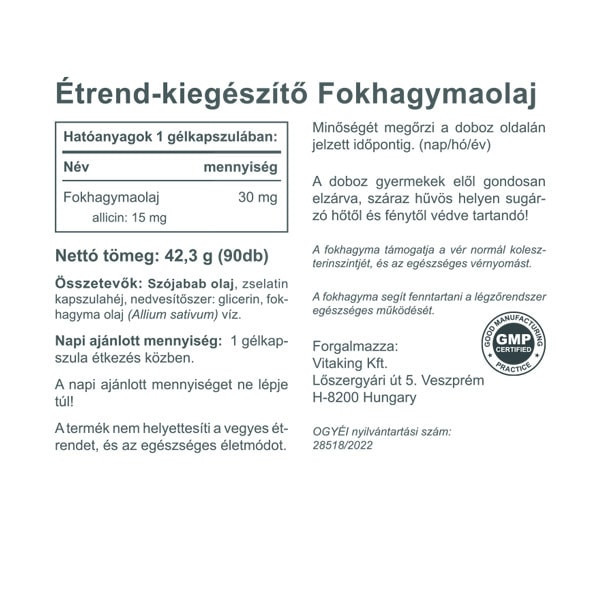 A fokhagyma nem csupán a hagyományos konyha egyik legősibb összetevője, hanem évszázadok óta az egészségtudatos életvitel megbecsült része is. A Vitaking Fokhagyma olaj kapszula ezt a hagyományt ötvözi a korszerű táplálkozástudomány elvárásaival.