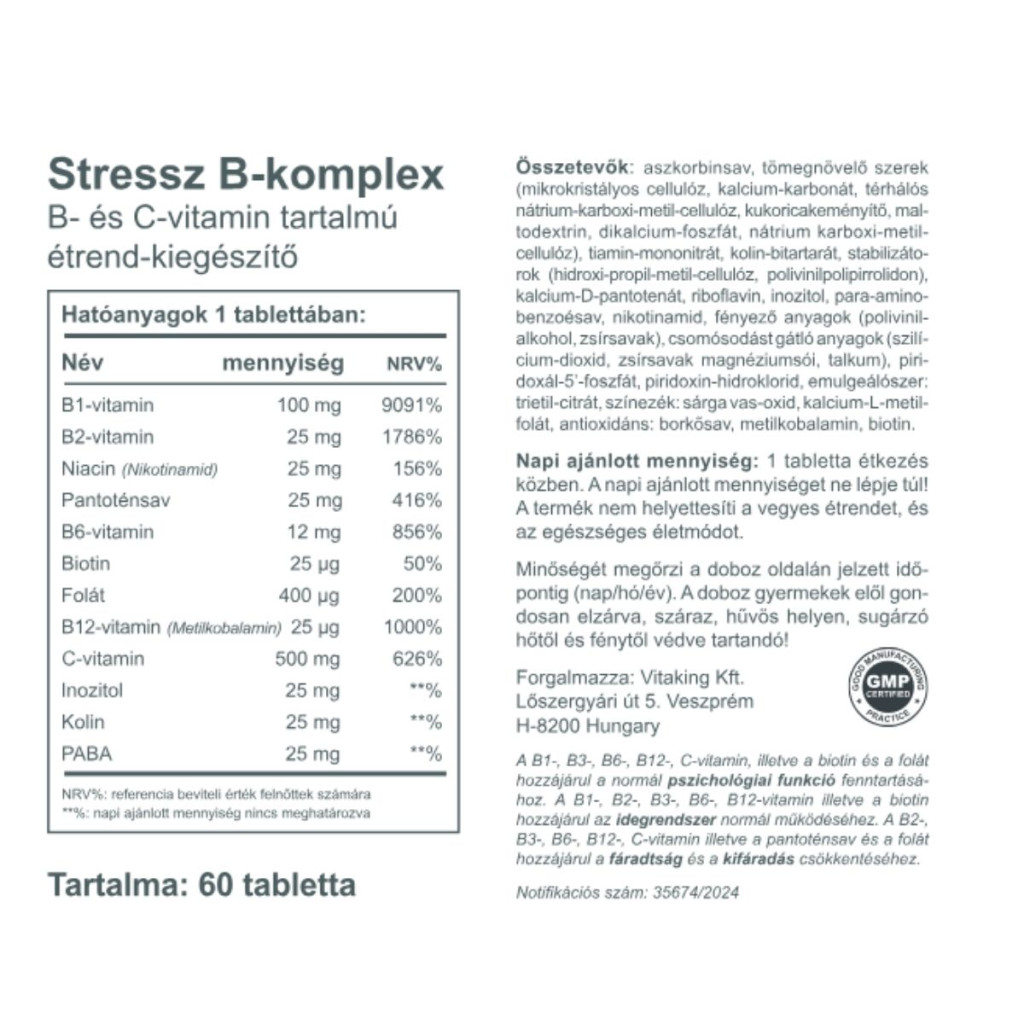A Stressz B-komplex 500mg C-vitamin is tartalmaz!