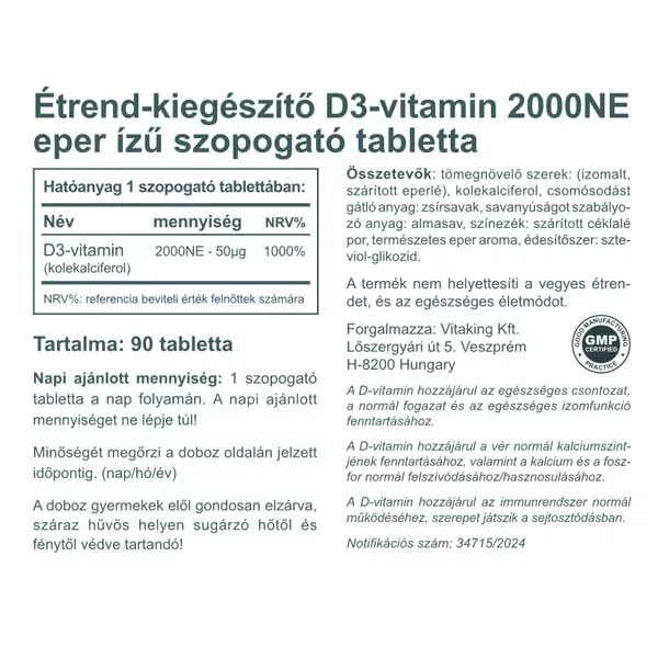 Ezt az epres szopogató tablettát azoknak ajánljuk, akik szeretnének egy egyszerű, finom és természetes megoldást a D3-vitamin pótlására, különösen azoknak, akik napfényhiányos időszakban élnek, vagy étrendjük nem tartalmaz elegendő D-vitamint. Tökéletes választás minden családtag számára!