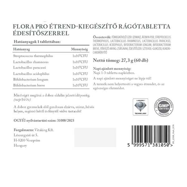 A FloraPro rágótabletta összetétele: