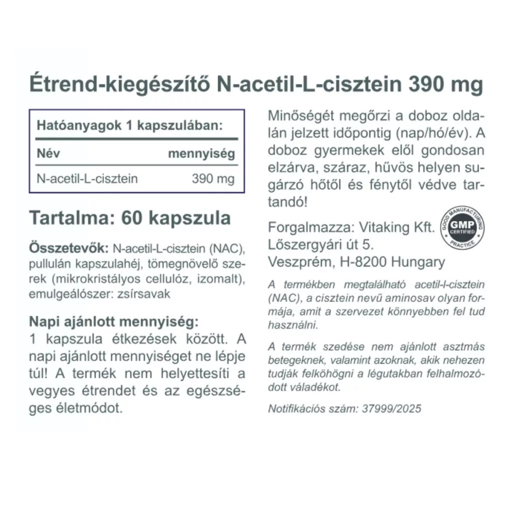 Vitaking NAC-390 (N-acetil-L-cisztein) 390mg (60)