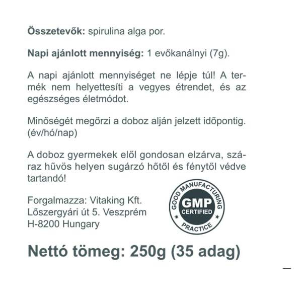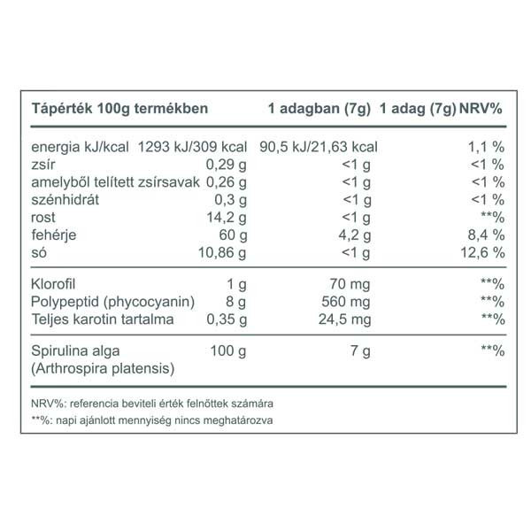 A Spirulina alga tökéletes összetételű tápanyag, több vitamint, enzimet(klorofill), ásványi anyagot tartalmaz, mint sok más élelmiszer, ezért használhatjuk táplálék-kiegészítőként.
